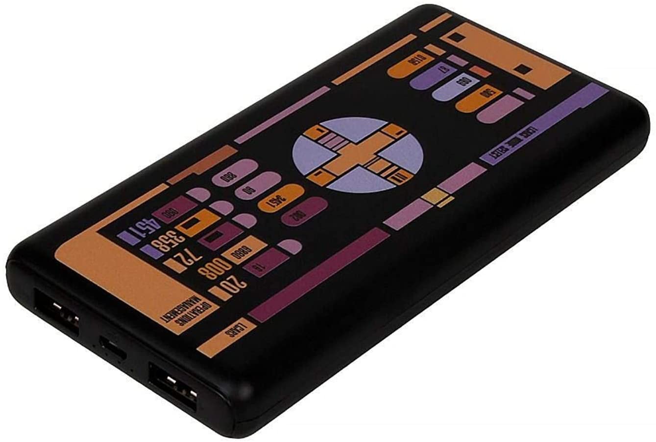Star Trek Phone Charger | Slim Pocket Sized 10,000mAh Power Bank with TNG LCARS Design, 2 USB Outputs, 2.1A & 1A, Phone and Tablet Backup Battery