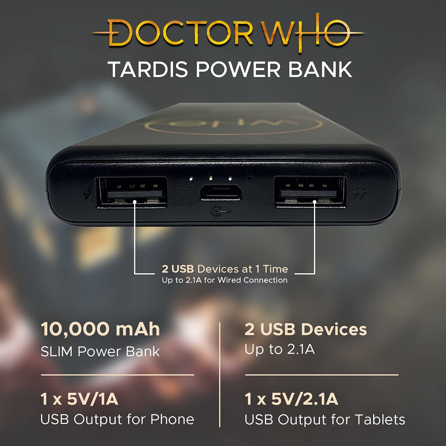 • 10,000mAH SLIM POWER BANK | We all “need more power Captain” that is what this slim pocket-sized power bank / backup battery provides.